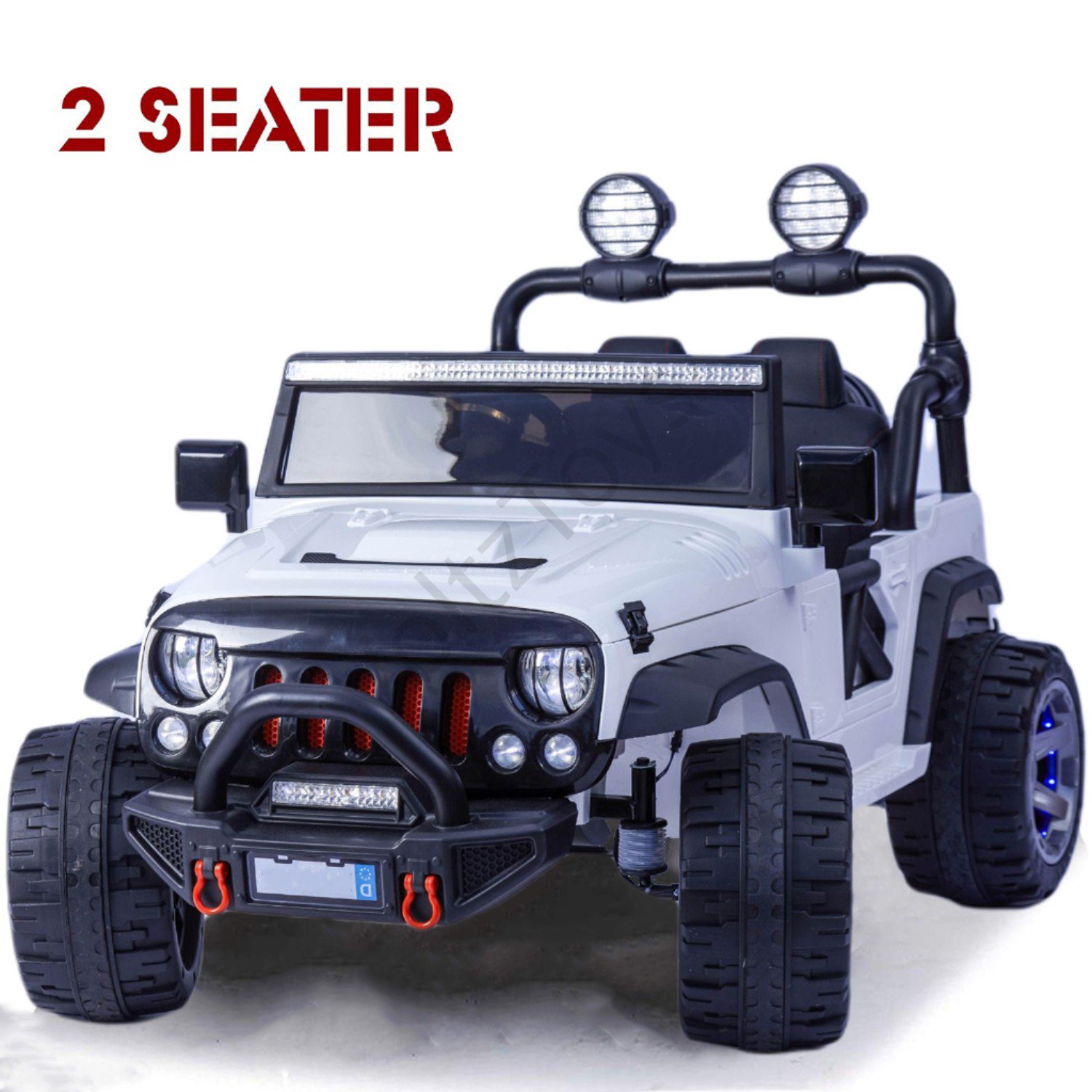 Voltz Toys 2 Seater 12v Ride On Car For Kids Realistic Jeep Truck With Full Led Lights Parental Remote Control Mp3 Player Leather Seat Rubber Wheels And Multi Speed Selection White Walmart Canada